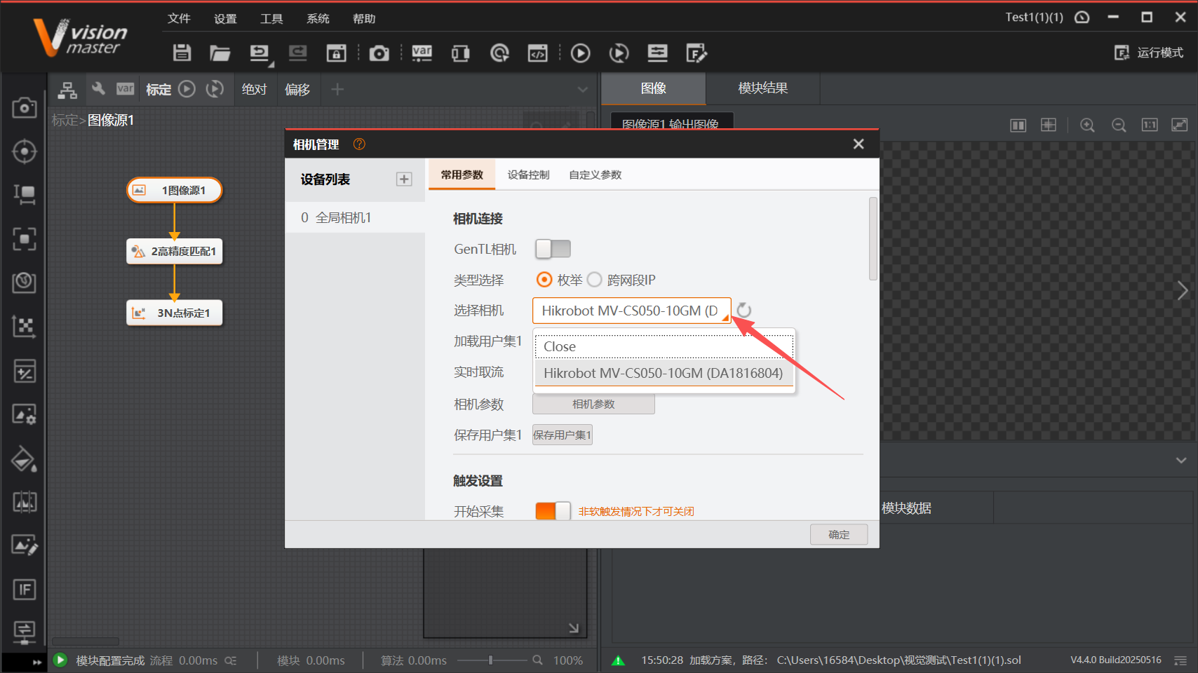 打开海康威视官方软件(VisionMaster,以下简称 vm),选择相机连接。
