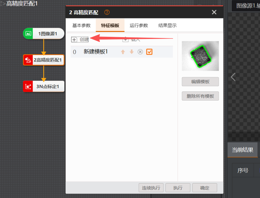 - 在编程界面选择“模板 > 视觉”,添加对应相机的视觉节点。