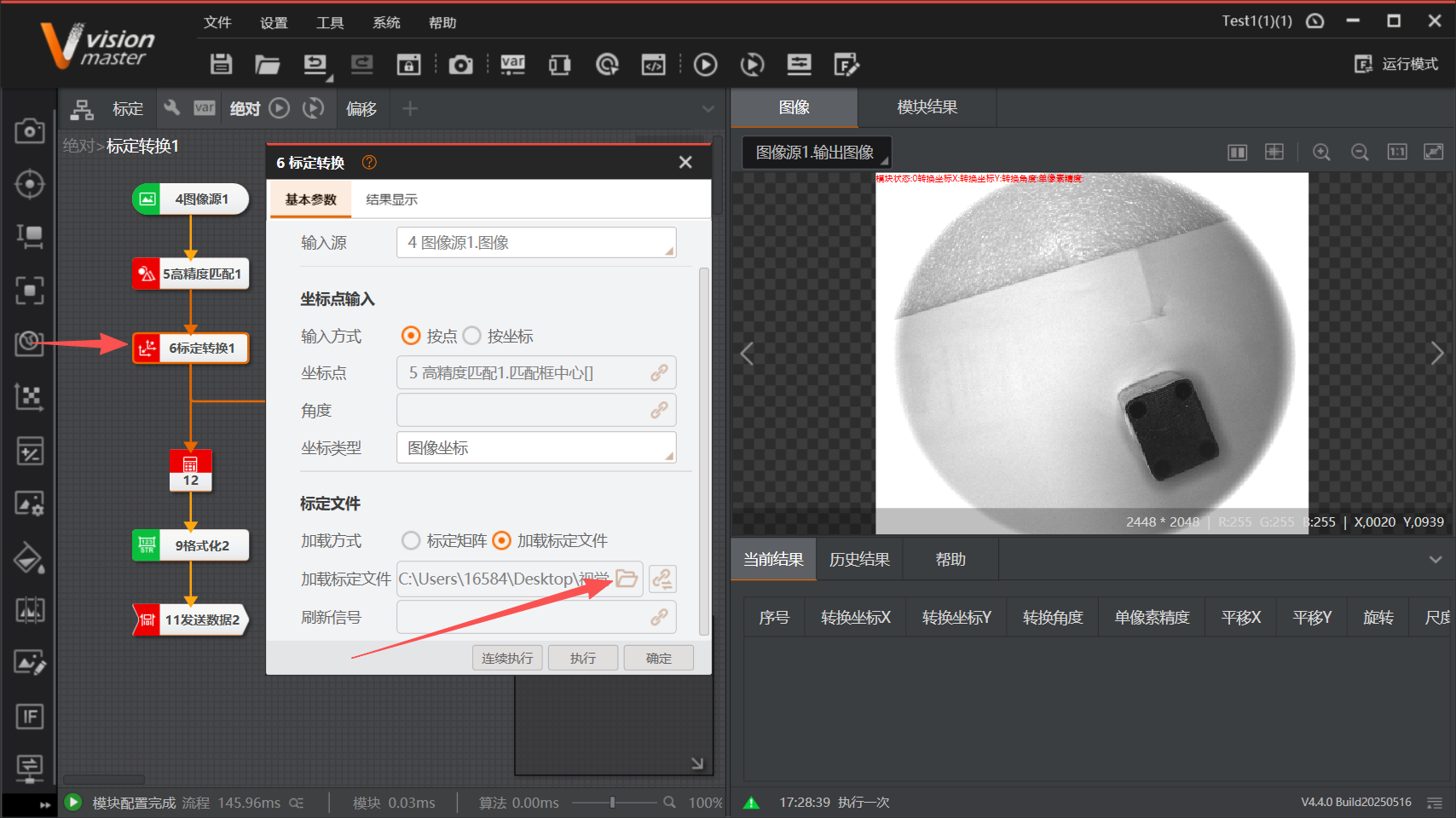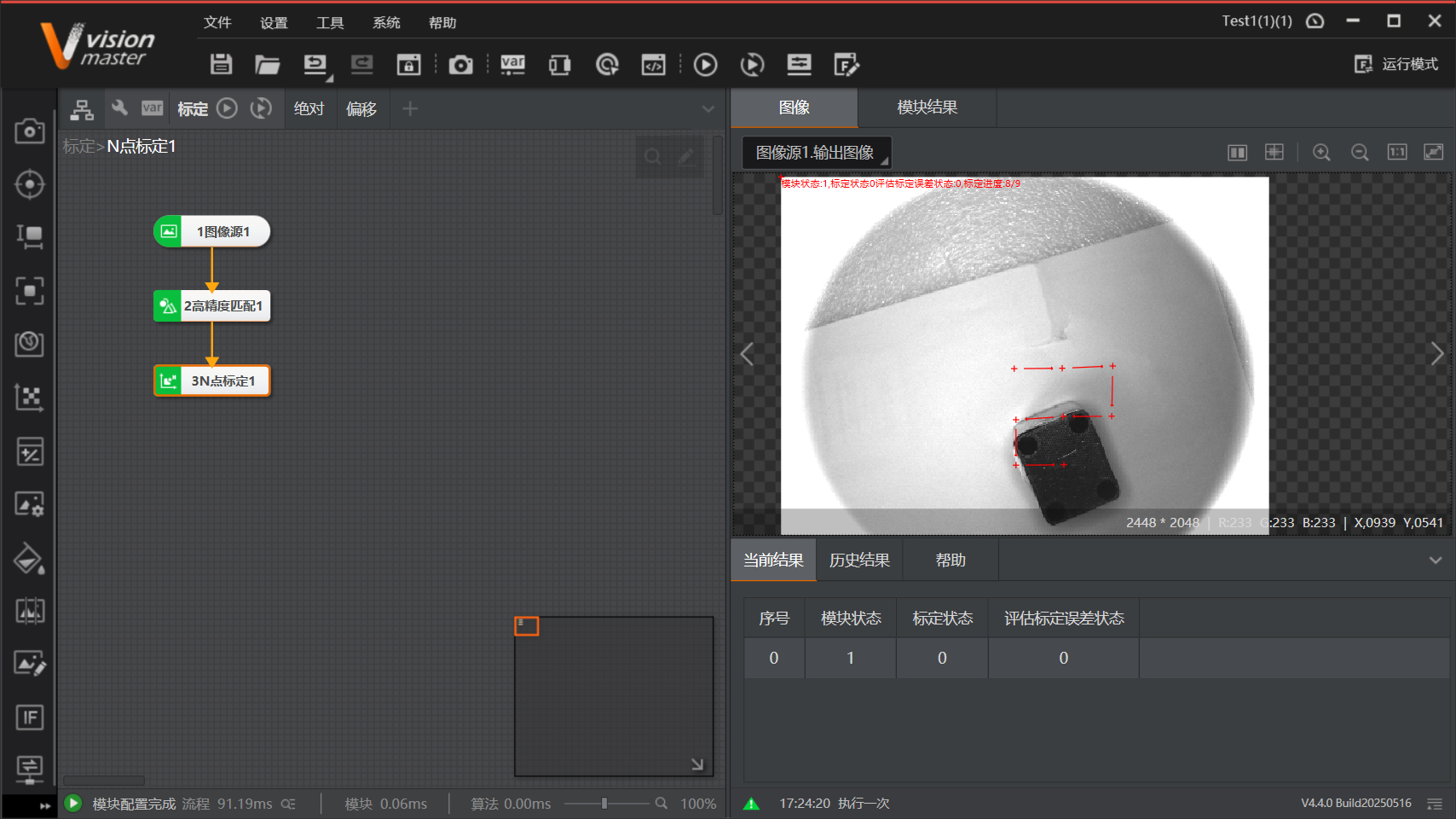 通过 vm 编写图像采集与数据处理流程,并针对预处理环节及返回数据的不同类型(如绝对位置、相对位置),编写对应的识别流程。