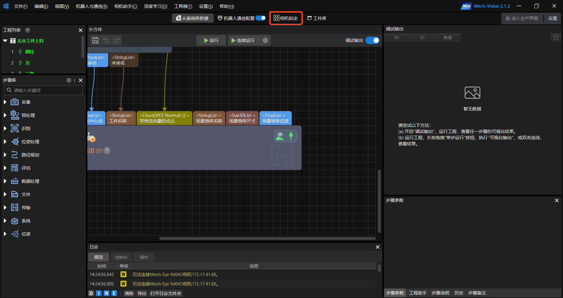 机械臂与相机通过 TCP/IP 直接通信:通过在程序树添加 Lua 脚本触发相机拍照并获取数据,获取的数据类型有两种含义: