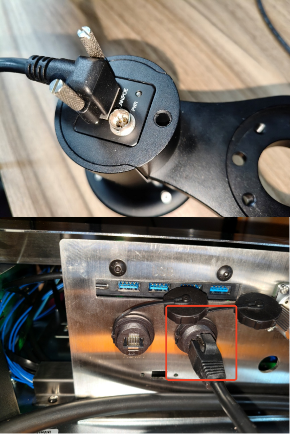 用网线连接相机和小车后方右侧网口,将相机端网线的固定螺丝拧紧防止脱落。