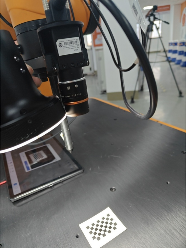 装回相机外壳,给机械臂上电。相机镜头中心点垂直于标定板,距离 20cm 左右。调整标定板,使标定板位于相机视野中心位置。