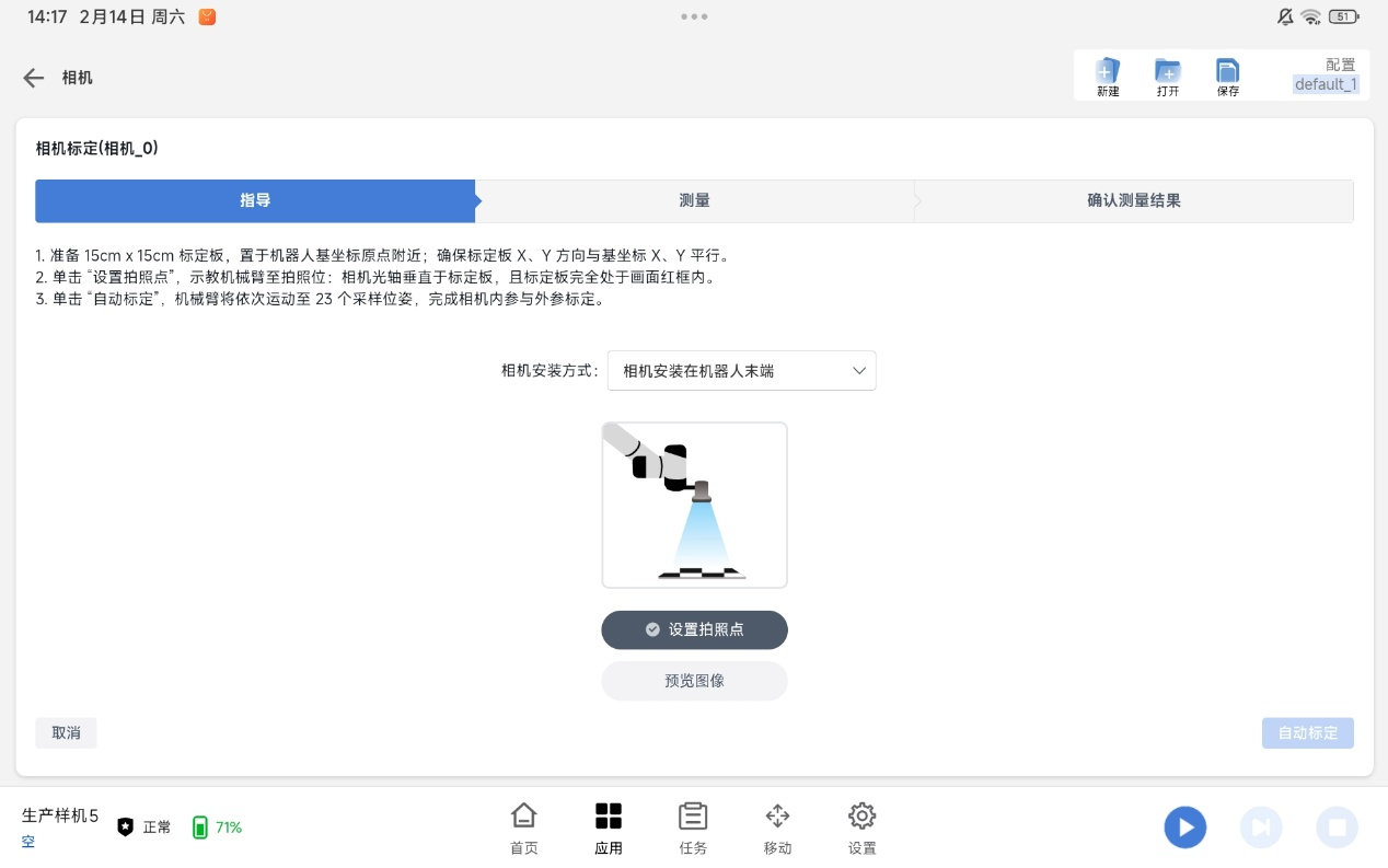 通过预览图像再次确认标定板是否位于相机视野中央确认无误后,点击设置拍照点,记录当前机械臂位姿。