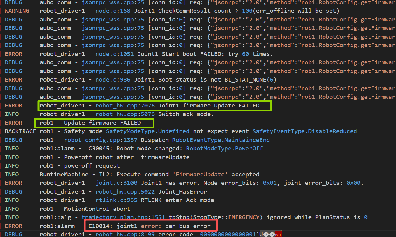 PS:关于硬件问题的解决,若现场有条件的话,可以按照can错误硬件排查手册进行先期硬件排查。若无条件,则安排返厂维修。