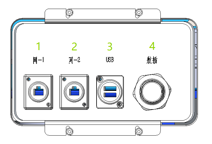 | 4 | 航插口 | 由航插线束给二层设备提供DC 48V电源(最大功率1000W)、安全接口板输出、工控机COMH1 RS485接口 |