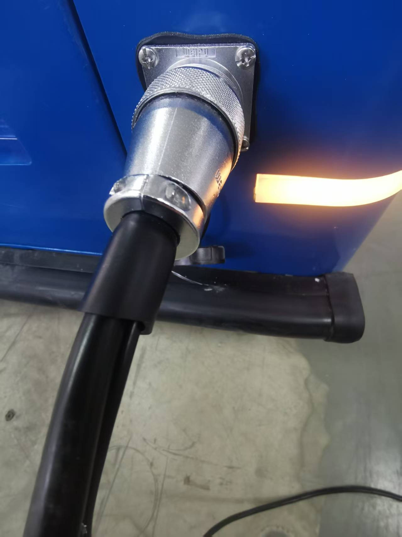 在进行手动充电时,应确保充电器插头与充电口插座插接到位,杜绝形成虚接而发生危险,造成损失。