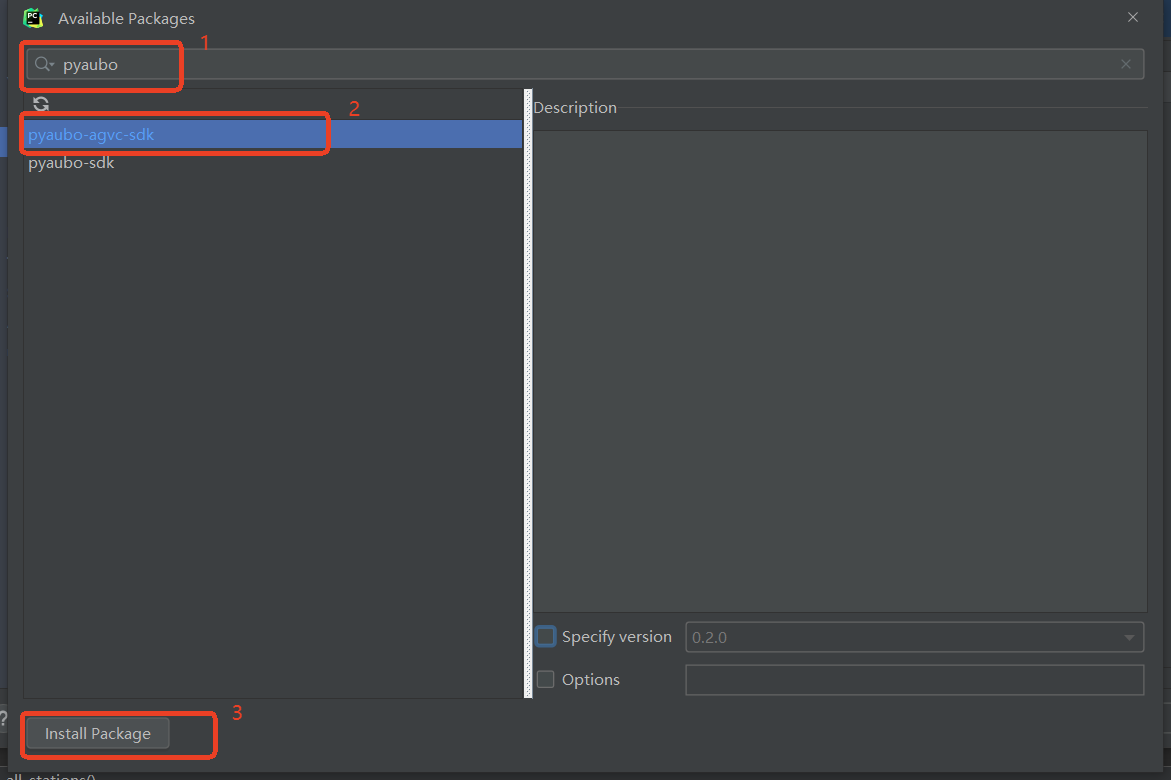 - 搜索“pyaubo-agvc-sdk”,选择版本后点击
