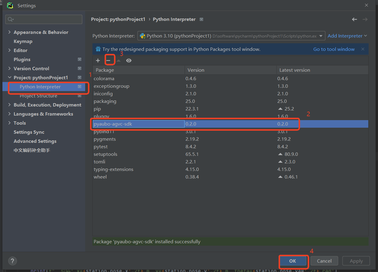 pip uninstall pyaubo-agvc-sdk方法 2:通过 PyCharm 卸载