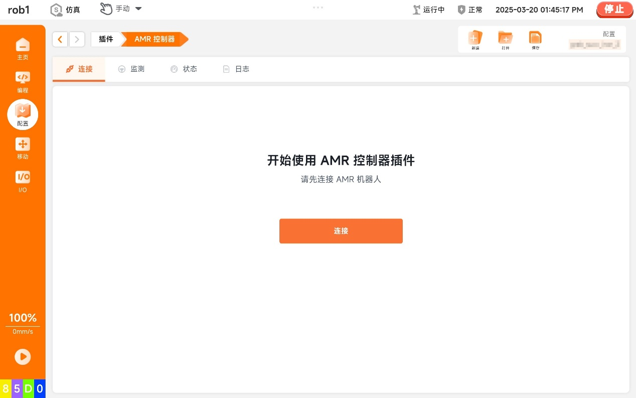 - 打开“配置 > 插件 > AMR”,连接 AGV。