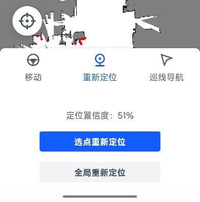 - 重定位:当 AGV 定位不准时,单击此按钮,系统会自动搜索并校正机器人的位置。