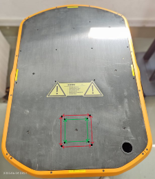 图 7 中红绿双箭头为移动底盘上台面机械臂安装孔位,其中红色箭头所指的孔位为 i10 及 i10 以上的型号的机械臂安装螺丝孔;绿色箭头所指的螺丝孔是 i5 和 i7 型号的机械臂安装螺丝孔。