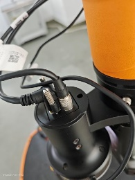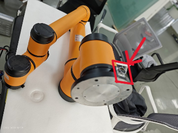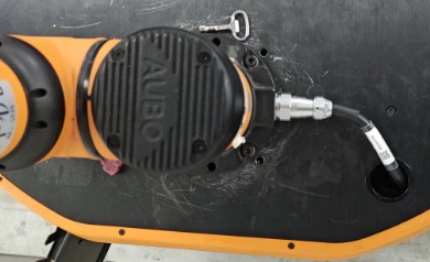 根据机械臂型号选择合适的安装孔位将机械臂安装到底盘上(机械臂螺丝孔见图 8)。机械臂连接线缆一端连接机械臂底座航插(图 9),另一端穿过底盘上台面过线孔(图 10)与移动底盘 ROBOT 接口航插连接(图 11)。