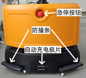 - 防撞条:本设备共有 4 条防撞条,位于设备底盘的四个角,位置如图 1、图 4,用于地盘移动碰撞物体后紧急停车。