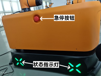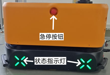 - 急停按钮:急停按钮位于移动底盘上层前面、左侧、右侧,按钮位置如图 1、图 2、图 3,用于紧急停止设备。
