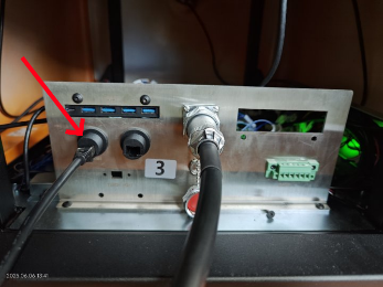 - 使用相机网线,网线一端插入相机网口并锁紧水晶头固定螺丝(图 16),另一端穿过底盘上台面过线孔插入接口板千兆网口(图 17)。