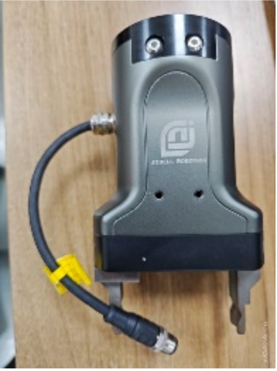 将电动夹爪线缆航插头的一端插到电动夹爪的航插母头上,并旋转拧紧固定螺母(图 26);线缆另一端穿过底盘上台面过线孔,棕色为正极插入接口板 DC24V 输出正极,蓝色为负极插入接口板 DC24V 输出正极,白色为 485A 接口连接 USB 转 485 模块 A 接口,黑色为 485B 接口连接 USB 转 485 模块 B 接口(图 27),将 USB 转 485 模块 USB 公头插到接口面板的 USB 接口上(图 28)。