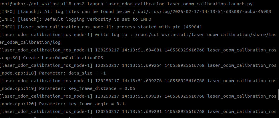ros2 launch laser_odom_calibration laser_odom_calibration.launch.py