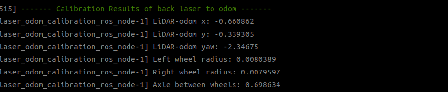 对比参数,对比前后激光的 left wheel radius 和 right wheel radius 观察结果是否相近。
