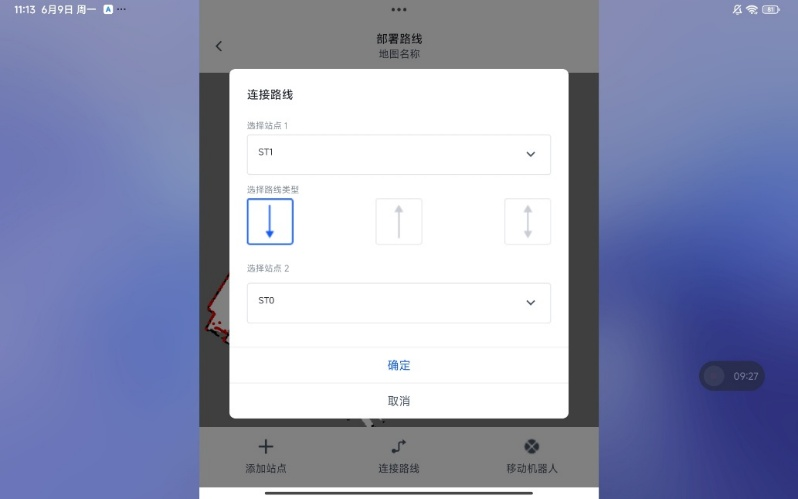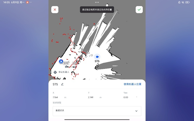 选择移动,设置目标站点和中间站点。需要将整条导航路径上的站点都进行添加,否则无法进行导航。