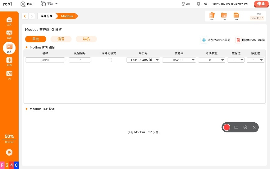aubo_studio 上建立 ModbusTCP 连接,APP 作为主站连接电脑从站。