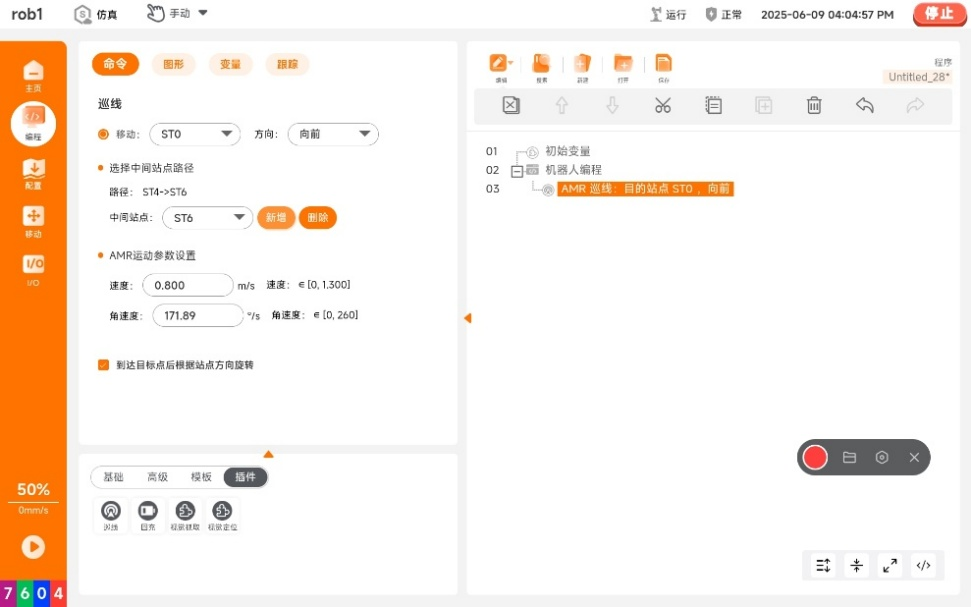 点击添加路点,使用机器人当前位置或是手动设置位置坐标进行设置。