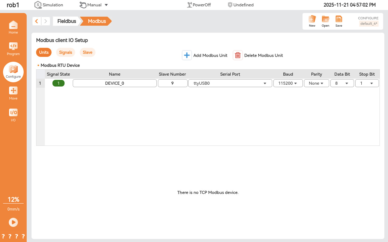 Note: If the communication is unstable and the signal status flashes, you can reduce the baud rate value (e.g., 9600, 4800).