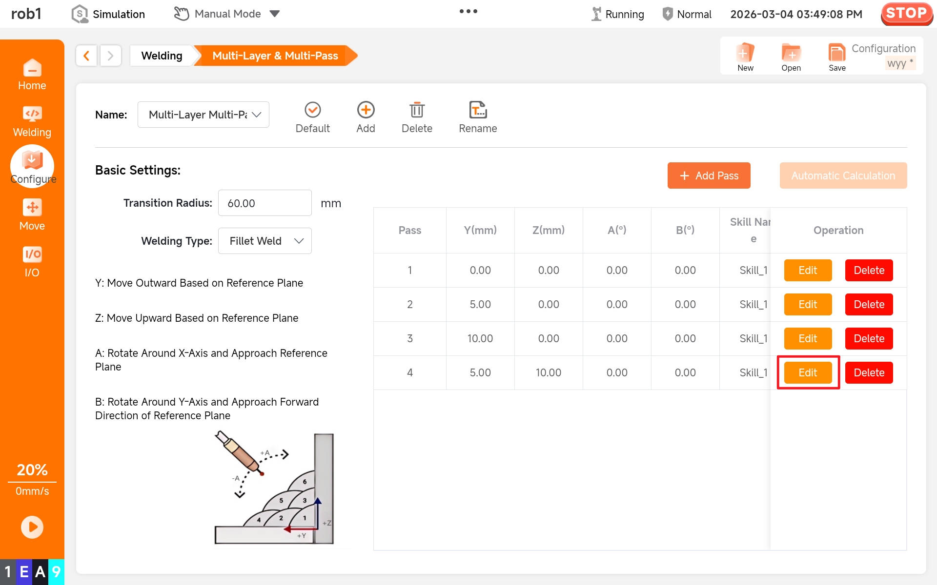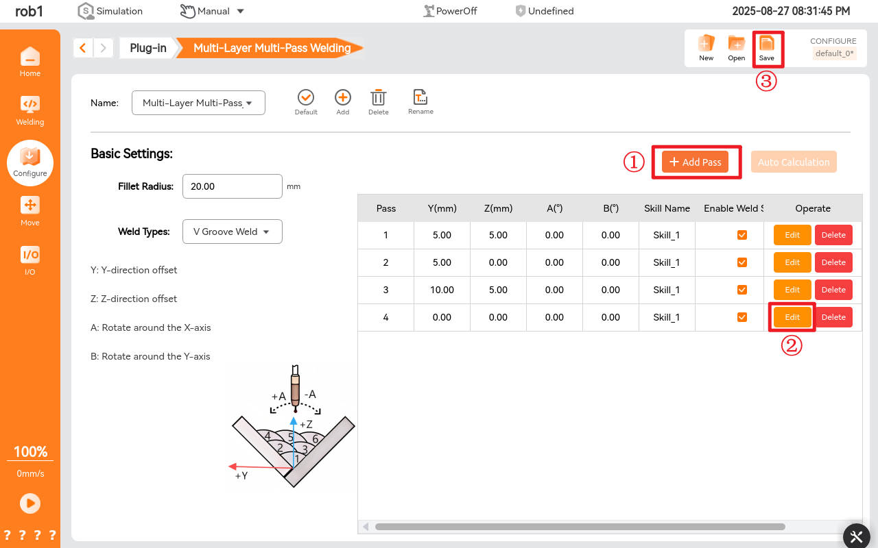 7.9 Configure multi-layer and multi-pass welding parameters