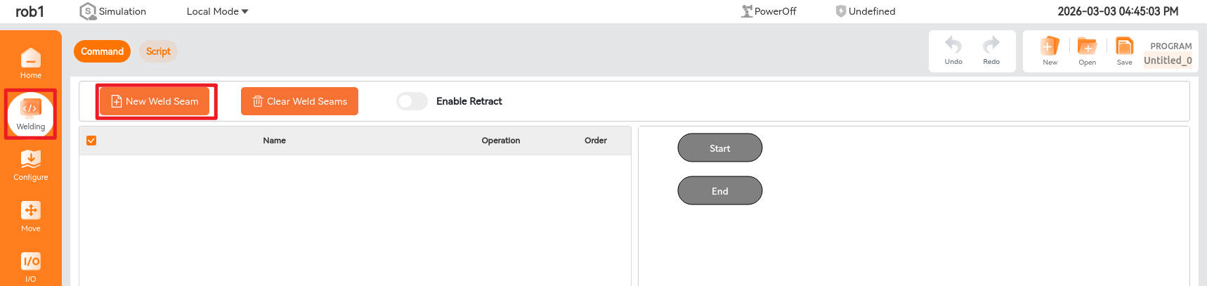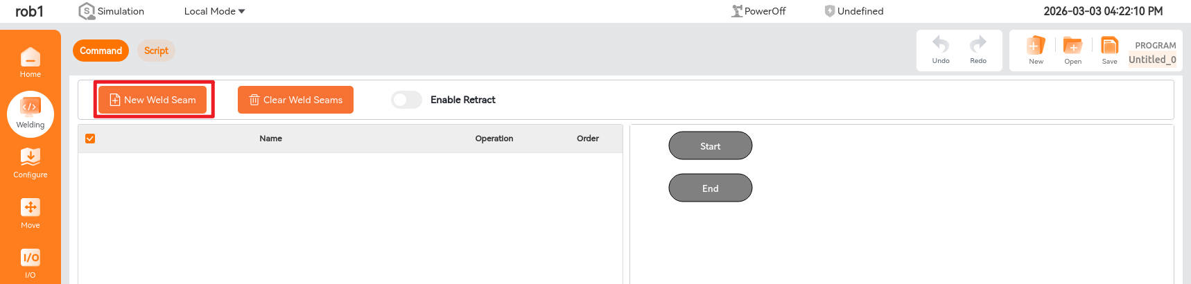 Click [Welding] -> [New Weld Seam] to enter the weld editing interface.