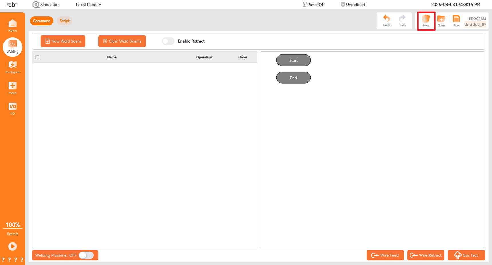 Click the [New] button shown below to create a new welding project.