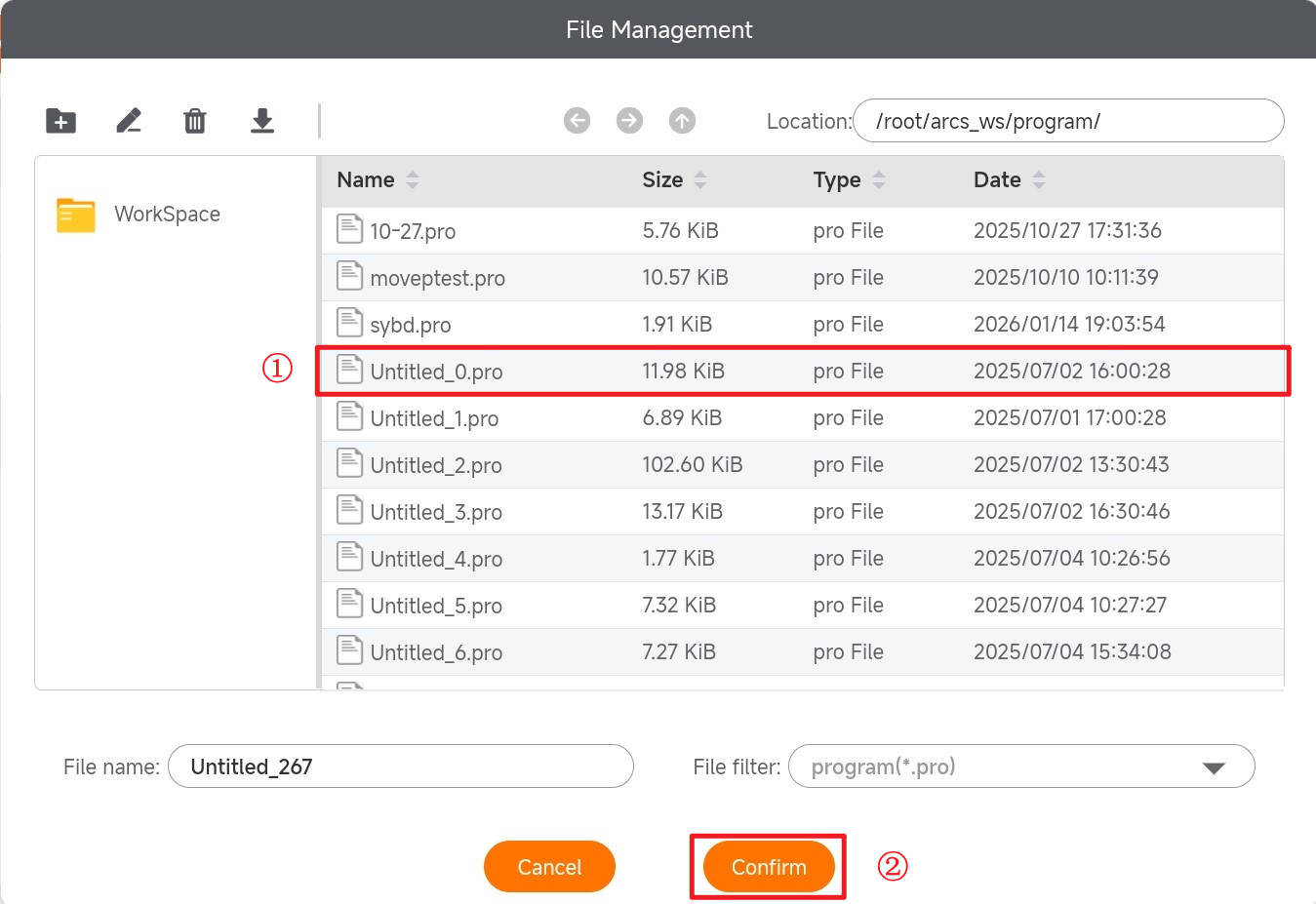 After clicking [Unlock], the following welding project list will appear. Select the project file you want to open from this list, and then click [Confirm] to open the welding project.