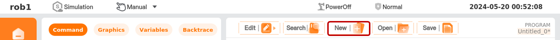 In page [Program], click [New] in the program manager tool bar to create a new program file.