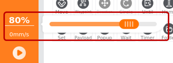 Before moving the robot arm, click the [Speed] button on the left menu bar, and drag the [Speed Bar] slider to adjust the movement speed of the robot arm.