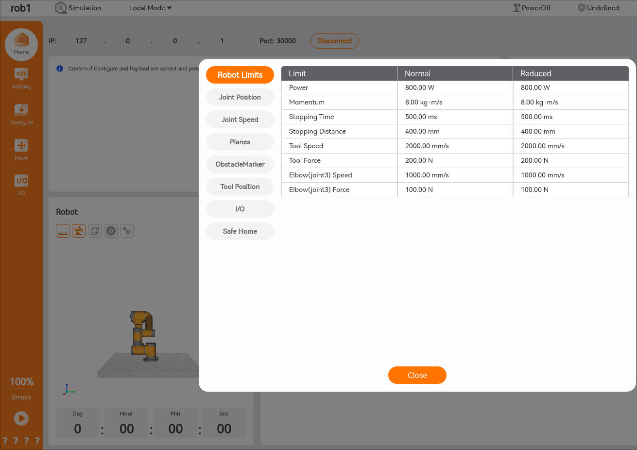 The robot will be powered off when the safety configuration is changed.