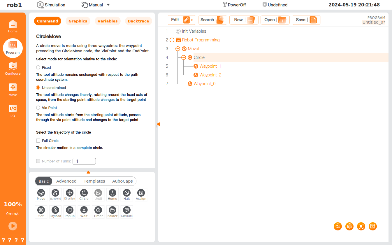 - The [Circle] node needs to be used under the [MoveL] command.
