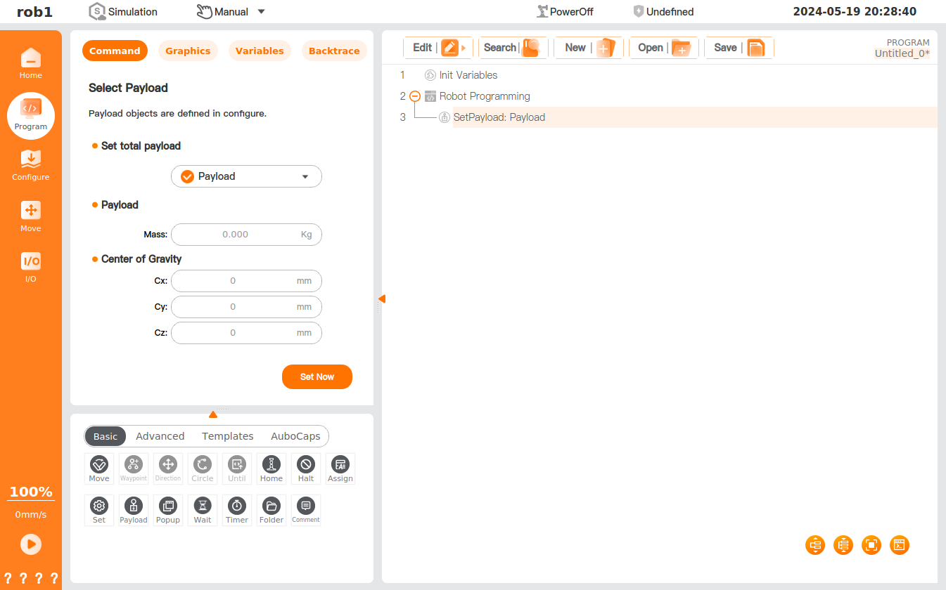 Payload setting is required for picking up and releasing materials by the robot.