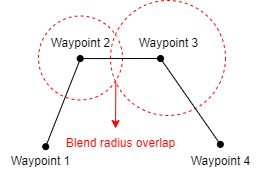 - Blend with radius: If there are other waypoints after the node, the robot will not stop but run smoothly to the next node.