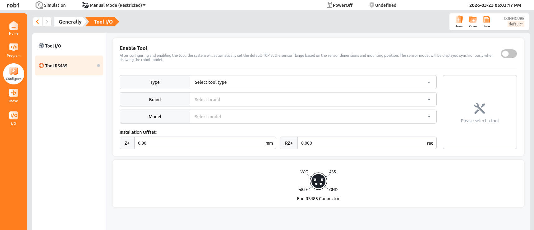 - Control right: Control the switching of tool I/O interfaces.