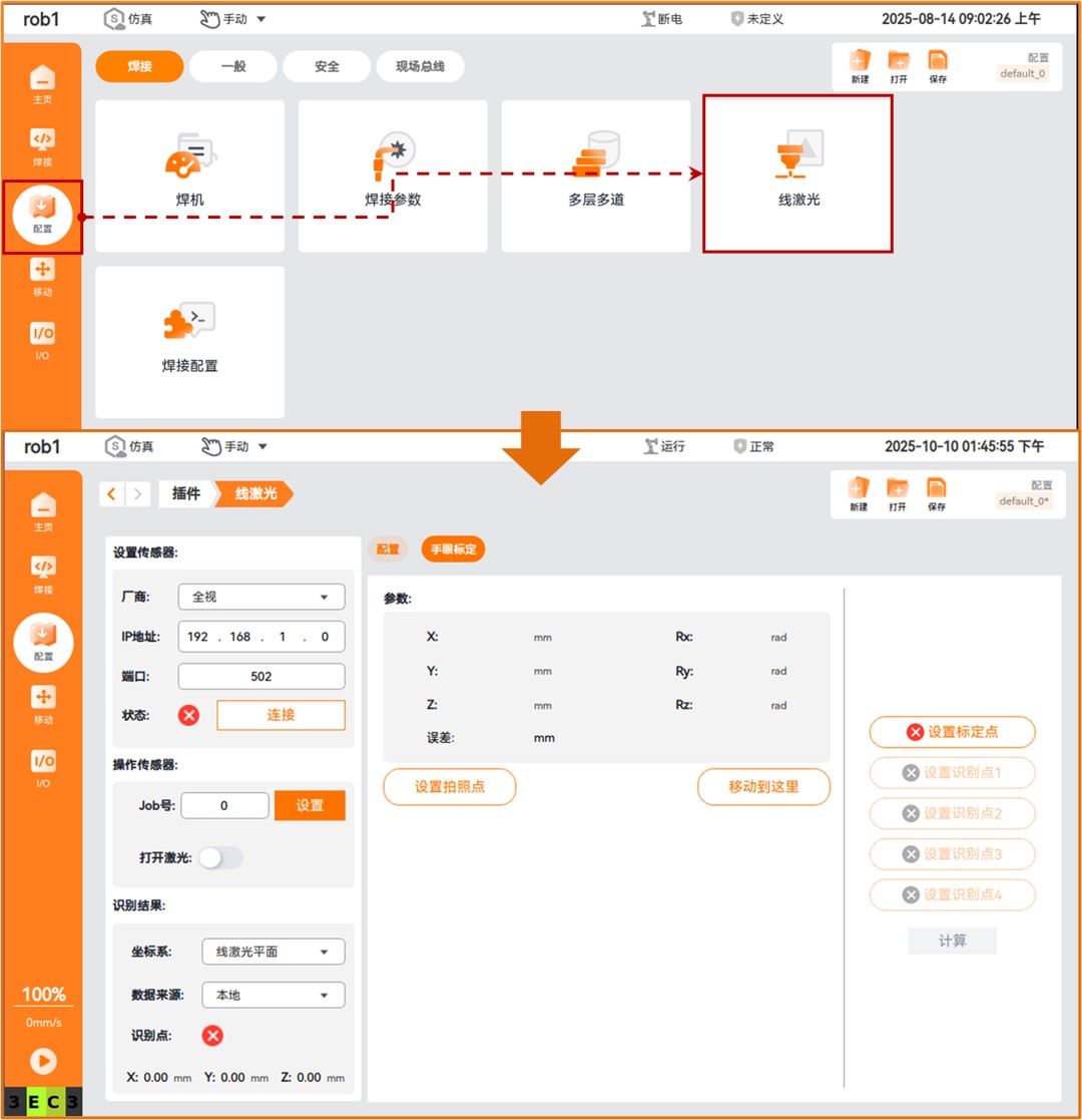 控制柜重启成功后,可分别在 【焊接】、【配置 > 焊接】 中查看新增的插件功能。